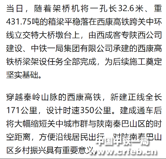 新華社客戶端:西康高鐵全線完成橋梁架設