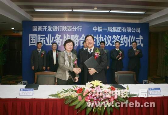 中鐵一局與國家開發銀行陜西分行12月26日在西安簽署國際業務戰略合作協議。這意味著企業將得到1.2億美元的保理融資和今后5年總計50億美元的融資支持,中鐵一局國際化戰略和海外事業迎來了一個重要的發展機遇期。