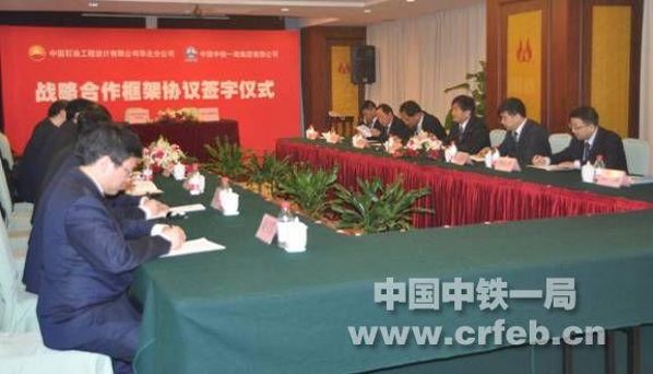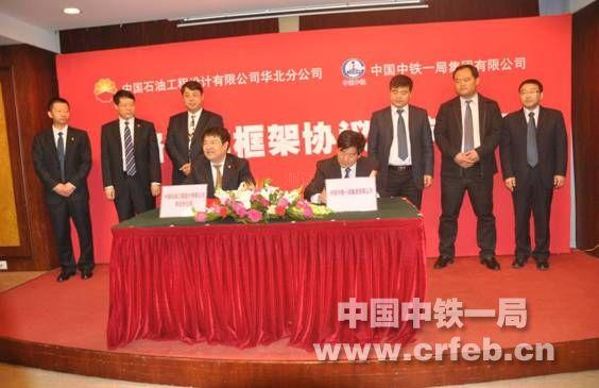 郭民龍與張振庭在會上簽訂了《中國中鐵一局集團有限公司與中國石油工程設計有限公司華北分公司戰略合作框架協議》。